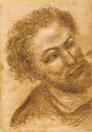 He is eloquent and voluble:"Thomas knows how to speak. It seems like he is advertising at the market to sell his merchandise, but he manages to convince," says Simon Peter about him.[31]His rhetoric is very useful to the group of Apostles, especially when it comes to negotiating with the Philistines, who are not favorable to the Jews.[32]